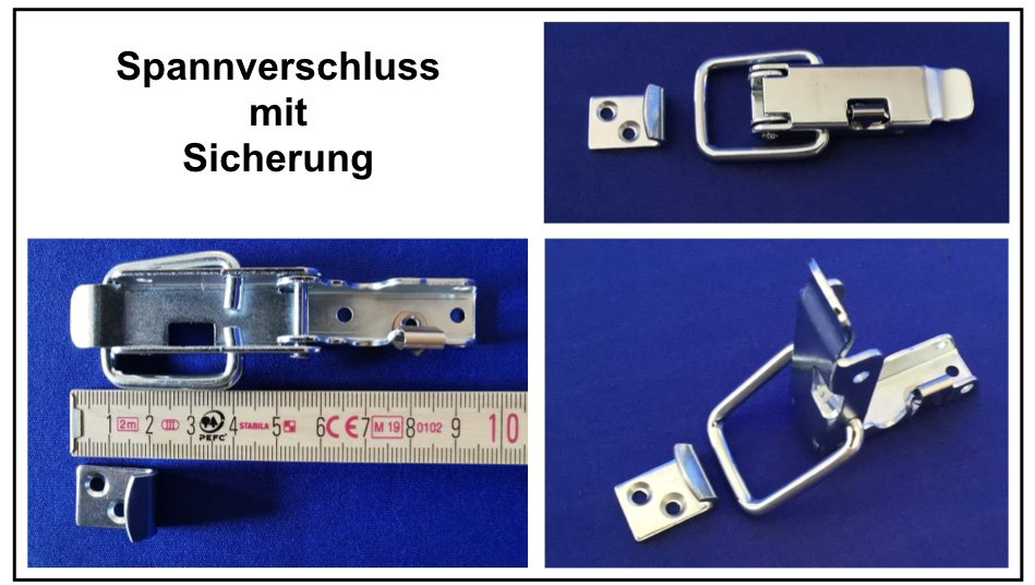 Einzelner Spannverschluss mit Sicherung und Gegenhaken.